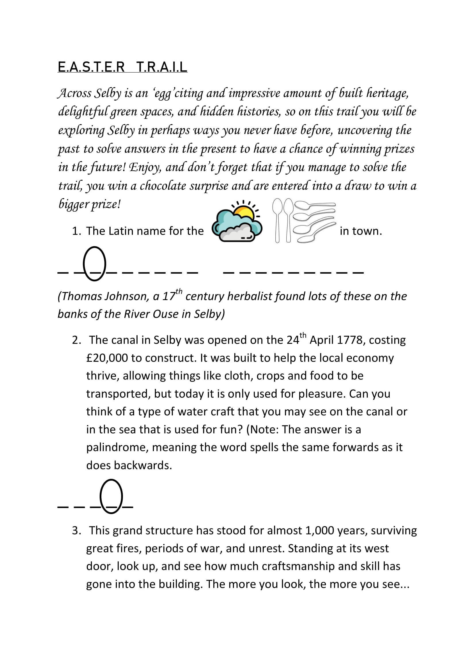 EASTER EGG TRAIL AROUND SELBY LAUNCHED FOR STUDENTS, YOUTH, YOUNG ADULTS, THE YOUNG AT HEART, & FAMILIES